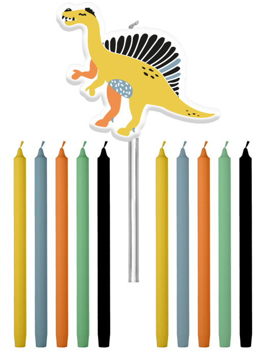- Inclusief dinosaurus topper + 10 kleine kaarsjes