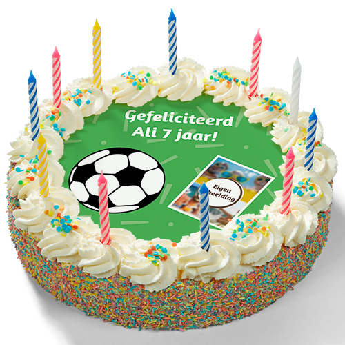 Met de naam, leeftijd en foto van de jarige maak je deze taart écht persoonlijk.