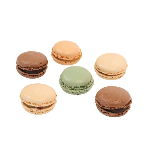Deze elegante macarons hebben een knapperige buitenkant en een zachte romige vulling. Met hun stijlvolle uitstraling zijn ze perfect als luxe traktatie, relatiegeschenk of verfijnd detail in showroom en winkel.