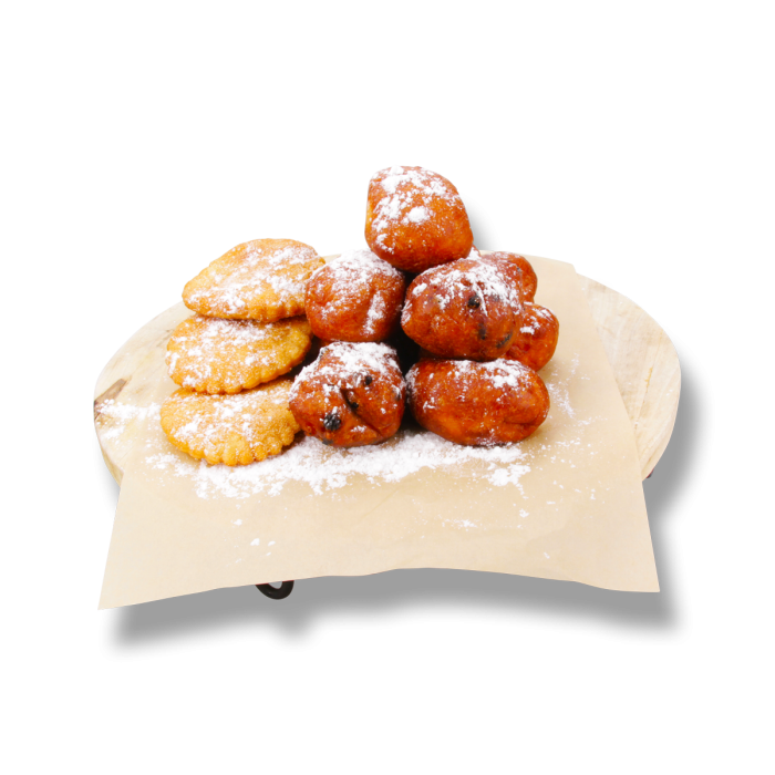 Oliebollen en appelbeignets zijn traditionele Nederlandse lekkernijen die worden gegeten tijdens de feestdagen, vooral rond Nieuwjaar. Ze kunnen worden gegeten met poedersuiker, suikerglazuur, slagroom of andere toppings.