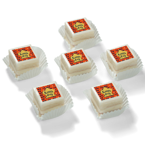 Super handig om uit te delen en ook nog fantastisch lekker. Mocht het wenselijk zijn kunnen we de Petit fours ook nog per stuk verpakken. De gebakjes worden voor Koningsdag voorzien van een super leuke afbeelding.
