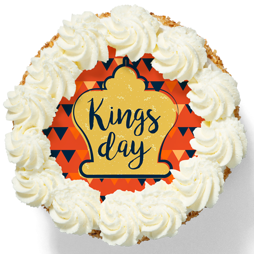Koningsdag is een feestelijke dag en bij feest mag de slagroomtaart niet ontbreken. Een stukje heerlijke slagroomtaart tijdens de speech van de Koning, wie tekent er niet voor. Deze unieke ronde taart met Koningsdag afbeelding is gevuld met echte slagroom en jam en opgebouwd vanuit een luchtige cake.